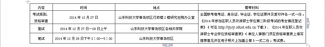 1、公布GCT分数线:2014年12月15~20日,公司在研究生院网页上(网址:http://yjsy.sdust.edu.cn)公布可参加第二阶段考试的“GCT”分数线,合格考生可查阅第二阶段考试信息,同时登录全国联考报名信息平台下载本人《2014年在职人员攻读硕士专业学位资格审查表》。