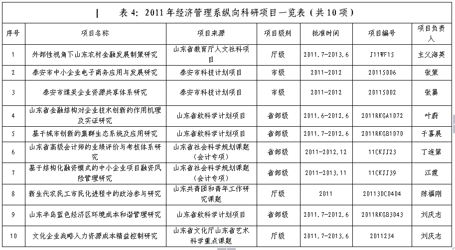 2011年经济管理系纵向科研项目一览表