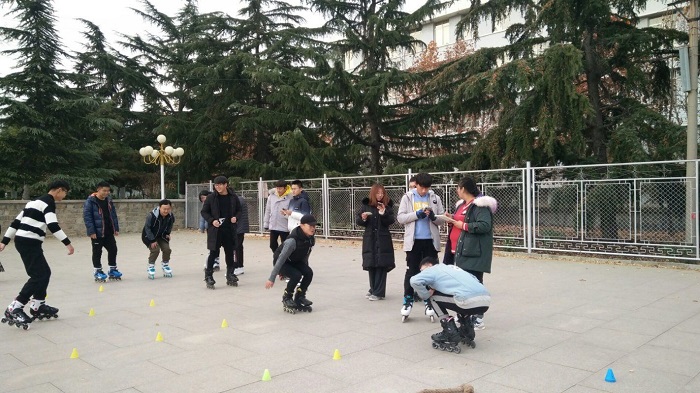 11月29日,由经管系员工会主办,滑羽协会承办的轮滑比赛在西校园礼堂广场举行。