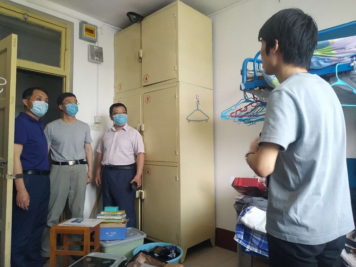 在宿舍内,院领导嘘寒问暖与返校员工聊起了家常:你家在什么地方,防疫物品够不够,目前签约了什么单位,毕业设计完成的怎么样……一句句暖心的话语拉近了与员工之间的距离,舒缓了员工刚返校的不适感。院领导还详细询问员工及家人的身体状况,就员工关心的疫情期间学习、生活问题进行耐心解答,叮嘱员工在疫情防控时期严格遵守公司相关规定,做好个人防护,按要求及时报送健康信息,告诫员工调整心态适应疫情防护期间的校园生活,以积极向上的精神面貌开启返校生活。院领导还仔细查看宿舍卫生及宿舍基础设施情况。