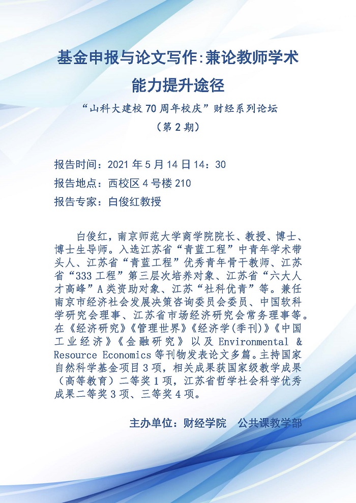“山科大建校70周年校庆”财经系列论坛(第2期)