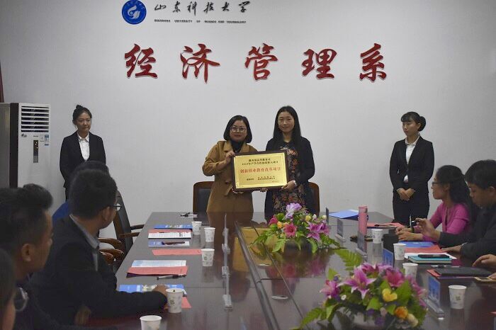 11月15日下午,经管系在系会议室举行2018年第一批教育部产学合作协同育人项目签约仪式。经管系党总支书记张恩生、系副主任张振华、刘庆志,各项目负责人及企业代表出席签约活动,仪式由刘庆志主持。