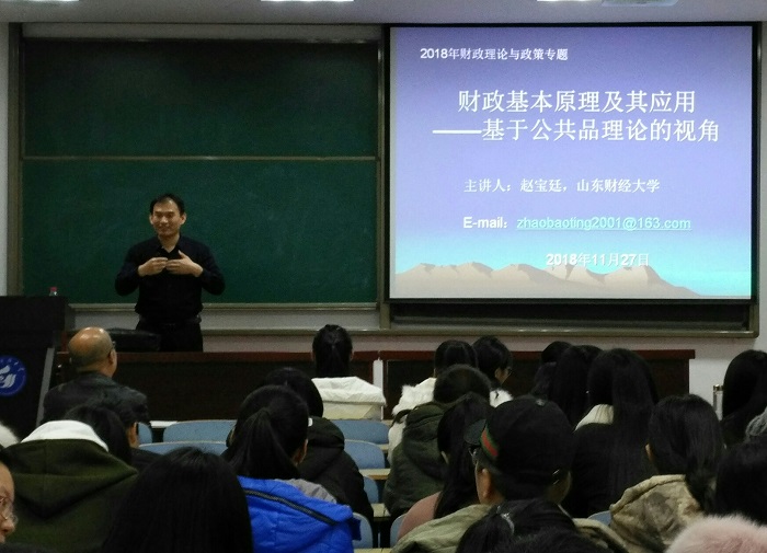 月27日下午,经管系教科办于4210举办了财政基本原理及其在实践中的应用——基于公共品理论的视角学术报告会,会议邀请了山东财经大学赵宝廷教授担任报告人。